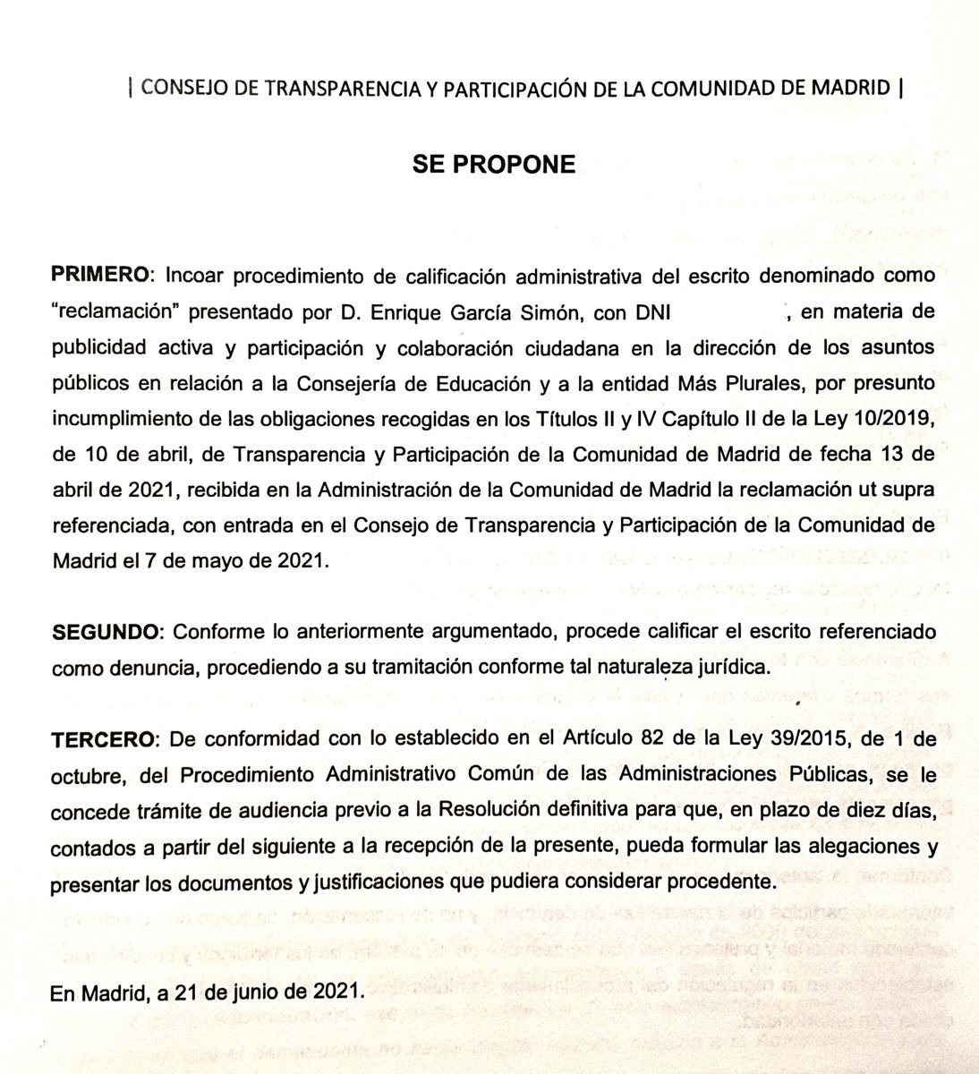 En noviembre 2021 Madrid deja de renovar convenio con Consejo de Transparencia y Buen Gobierno (CTBG) y se pasa a reclamar a Consejo de Transparencia y Participación (CTyP).