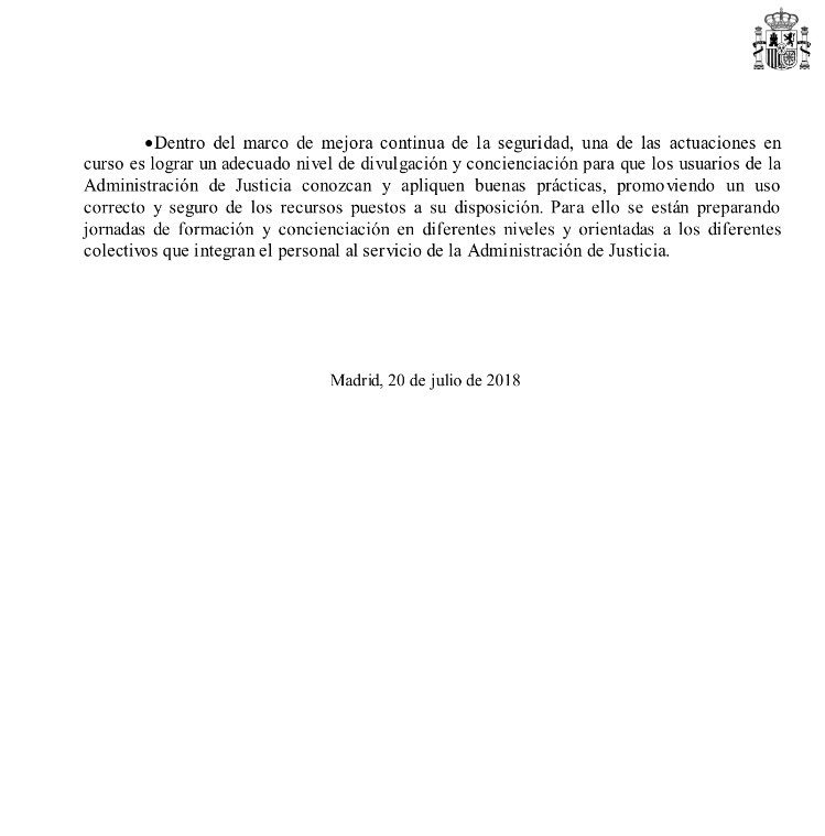 Respuesta del gobierno sobre el código seguro de verificación (CSV), la anonimización de las Sentencias y los protocolos de seguridad de los servicios de tecnología en justicia. #PreguntasParlamentarias