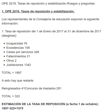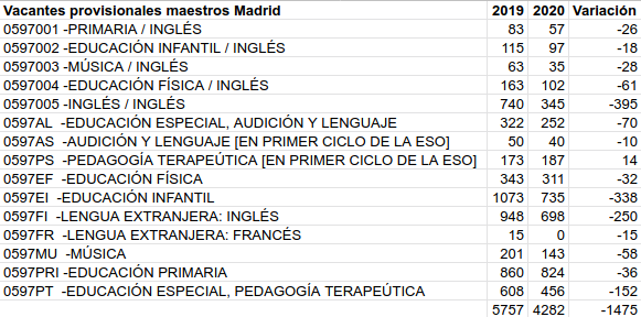 Hay quien puede pensar que hay datos de plantillas docentes, y con ellos se puede calcular variación. Es cierto que hay datos de ministerio y de las CCAA, pero son estadísticas globales y se dispone de ellas con cierto retraso.